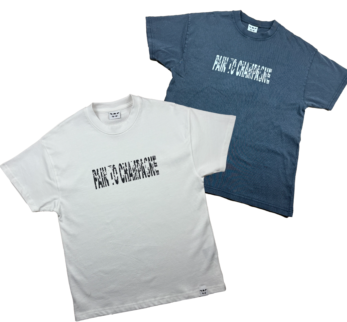 Both of our luxurious P2C box logo graphic t-shirts featuring the "P2C" box logo graphic with collaged pictures holographed inside the letters. All pictures included are OUR own images shot over the years.